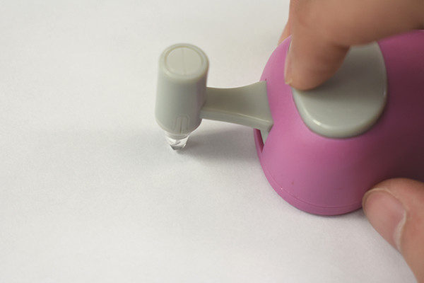 使用方法は、まずパソコンのマウスと同じように握ります。あとは本体上部のボタンを押したまま引くだけ。紙を2枚同時に切ってしまったり、机を傷つけたくない時はカッターマットなどを敷きましょう。