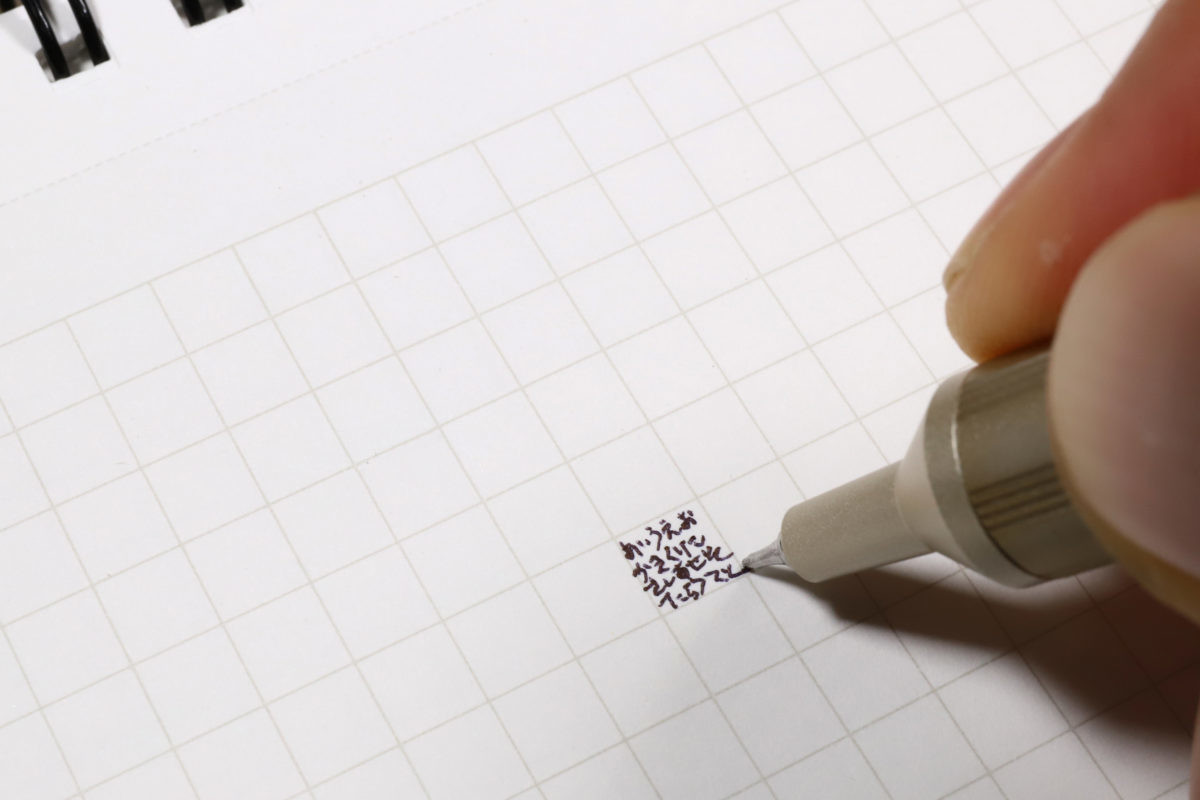 これだけ細いのに適度になめらかで、かつ少しカリッと手応えがある分コントロールもしやすい。つまり、手帳のマンスリー欄のように小さな場所に細かく書き込むのに、とてもマッチした書き味だと思う。実際、下の写真のように、5㎜方眼の中にこれだけ書き込めるんだから間違いない。