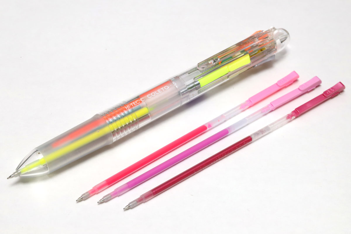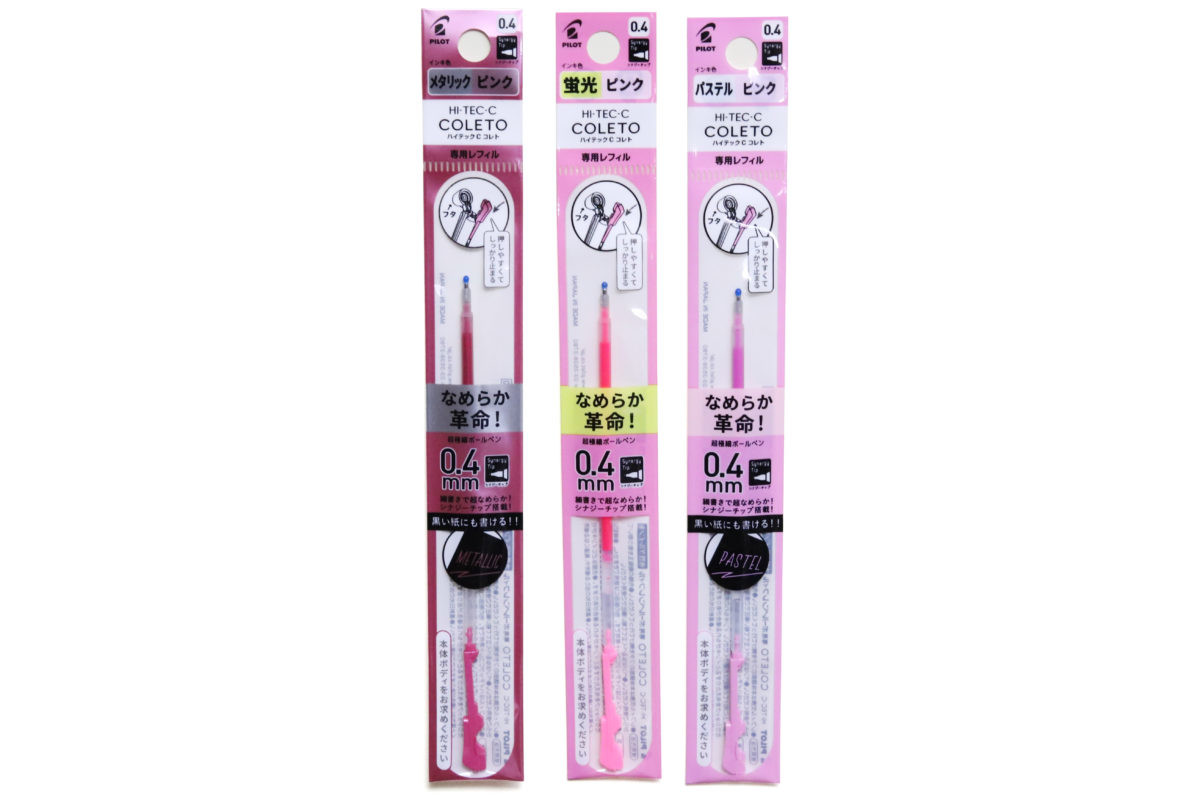 そもそも、ハイテックCブランドと言えば細字が身上ということで、それ以前にも0.5~0.3㎜のリフィルが選べたコレトだが、新リフィルは全てシナジーチップで書き味がアップした0.4㎜。なにより、カラーが明らかに従来とは違う面白い色揃いなのだ。