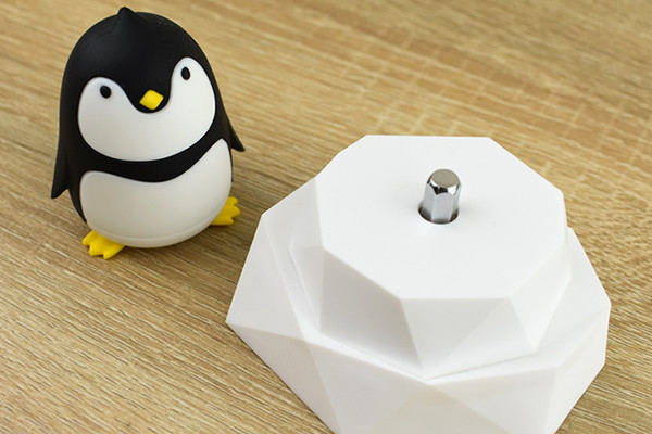同商品の外観は氷山の上に立ったペンギンがモチーフになっていて、ペンギン本体の丸みを帯びたフォルムやつぶらな瞳がなんともキュート。言われなければ工具とはわからない見た目で、インテリアとして置いてもまったく違和感はありません。ベースの氷山も含めると、寸法は79(長さ)×84(幅)×91mm(高さ)。それほどスペースを取るサイズではないので、デスクの片隅に置いておけばいつでもさっと使うことができます。