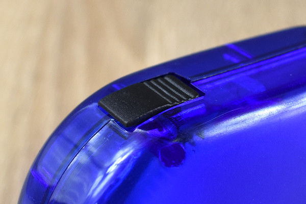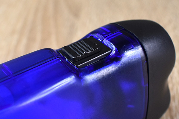 本体を握ると、ちょうど親指部分に内蔵電池点灯スイッチがあるためON・OFFの切り替えは簡単。