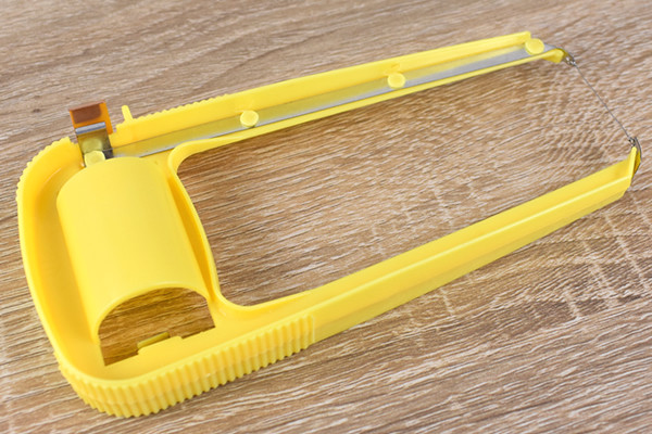 使い方は至ってシンプルで、まずは別売りの単2形乾電池をセット。本体のスイッチに親指を重ねたら、人差し指を本体に沿わせて残り3本の指で握るようにして持ちます。スイッチを押すとニクロム線が通電して、瞬く間に発熱。高温に弱い発泡スチロールの特性を活かして、刃物で切るのではなく熱で溶かしながら切っていく仕組みのようです。