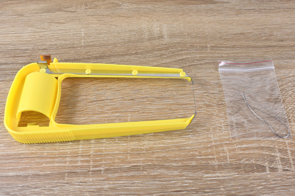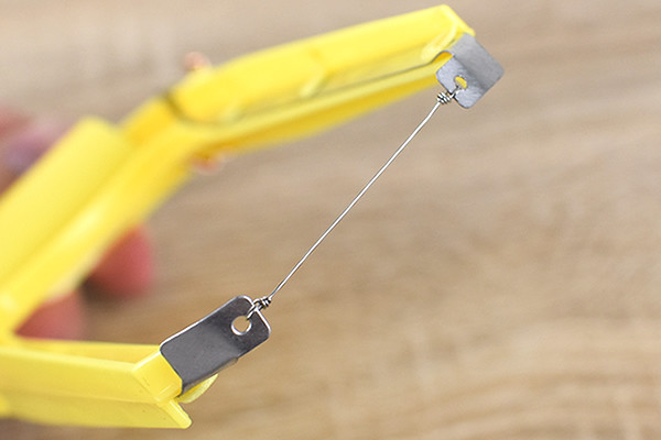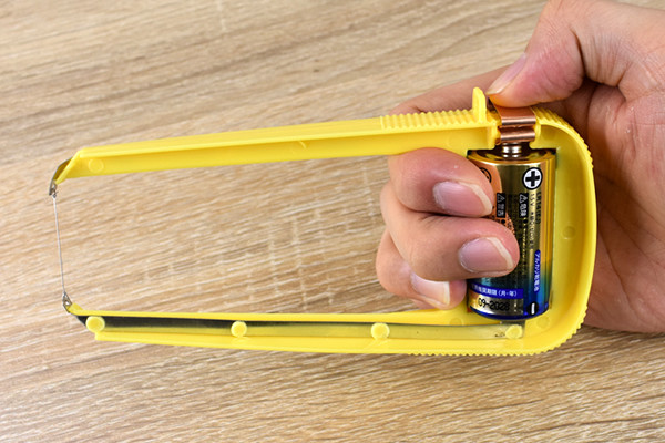 アイテムの外観は“Uの字”の形で、つけ根には単2形乾電池をはめ込むスペースが。また両先端にはニクロム線が結わえられ、交換用のニクロム線も同封されていました。