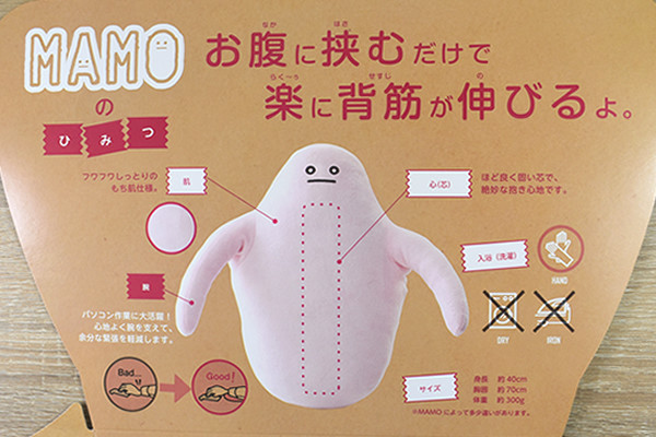 実際に購入した人は、「芯がしっかりしてて全然前かがみにならない。マモに出会えてホントによかった」「予想以上に肌触りと抱き心地がGOOD。おかげでデスクワークが少し楽になったよ」「友達の誕生日に買ってあげたら超喜んでくれた。プレゼント選びに悩んでる人におススメ」「いつもマモを抱えながらデスクワークしてます。可愛すぎてもう手放せません」などと大絶賛。