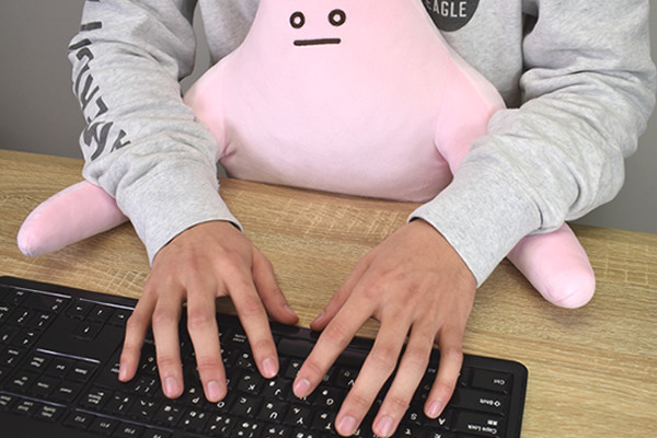 2つ目はダラッとした細長い“腕”。実は“アームレスト”にもなる優れもので、パソコン作業における腕の負担を軽減してくれます。使う時はマモをデスクとお腹の間に挟むか、背中に座らせてください。ちなみに洗濯やアイロンがけはできないため、汚れた際は手で洗ってあげましょう。