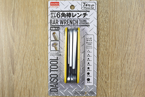 組み立て式の家具に使われることが多い「6角ネジ」。ネジを締め直す時に「6角棒レンチ」を使いますが、必要な時に限って見当たらないことはありませんか? 今回は、ダイソーで見つけた「折り込み6角棒レンチ」をセレクト。さっそく使い心地をチェックしましょう。