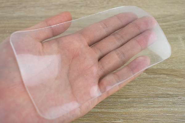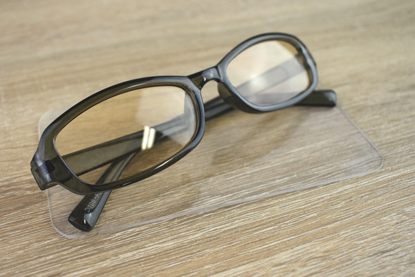 試しに“メガネ置き”として使用。シートの上に置くと、ピタッと貼りついてまったくズレません。手に取って接着部分を触れてみても、ベタつきは一切なし。シートの大きさは手のひらサイズのため、狭いスペースでも貼れると思います。