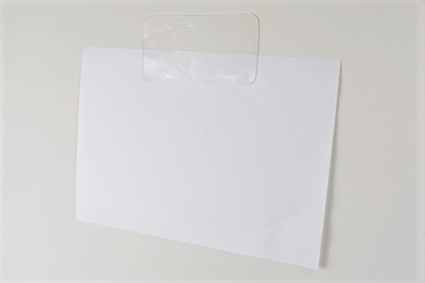 使い方は敷く以外に“貼りつける”ことも。保護フィルムを片面だけはがして、粘着面を書類やメモなどの上部分に貼りつければ“壁貼り”可能。書類の整理整頓にも役立つのがうれしいポイントです。