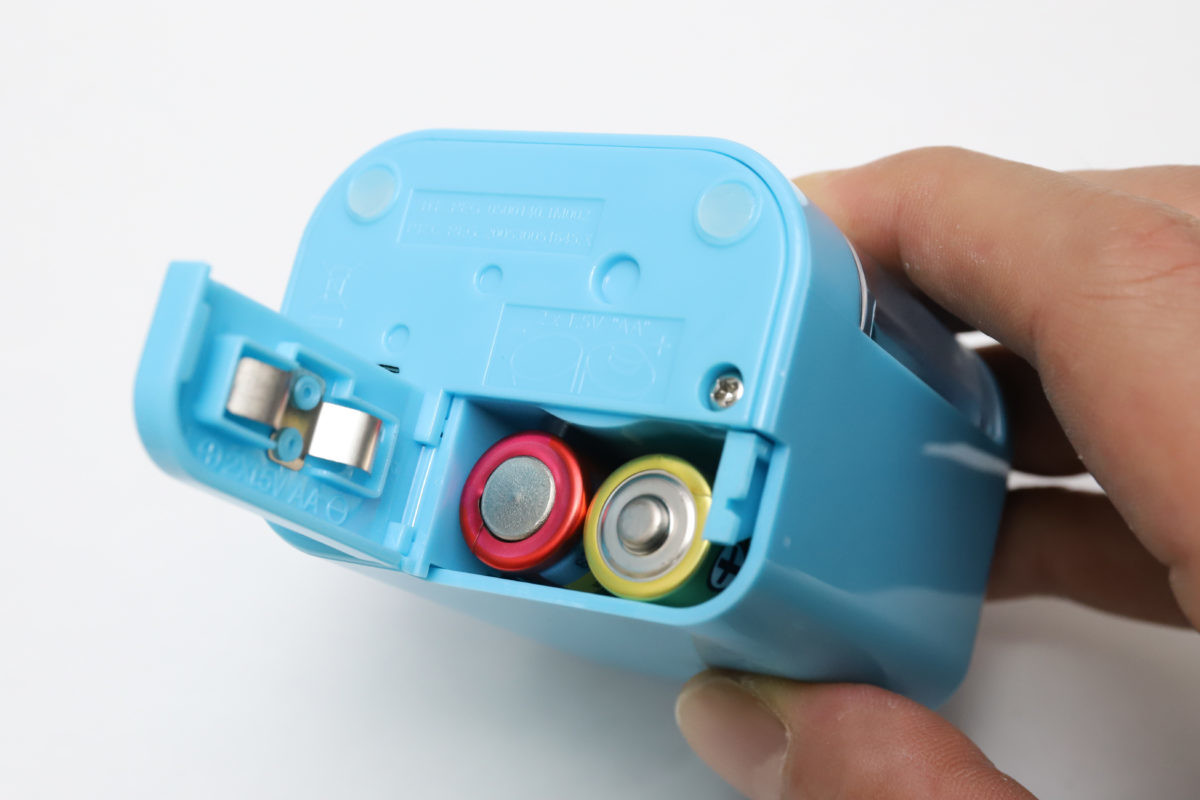 使用する電源は、アルカリ単3乾電池2本。高速モーターではあるものの、メーカー公称で400回以上は削れる、という設計になっている。また、電池を抜くと内部の削り器部分が固定されるため、いざという場合は手動で削ることも可能だ。