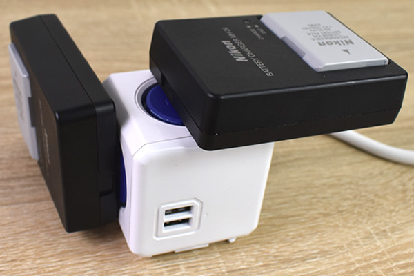●プラグ同士が全然干渉しない「PowerCube/パワーキューブ 1.5m USB付」(Allocacoc)