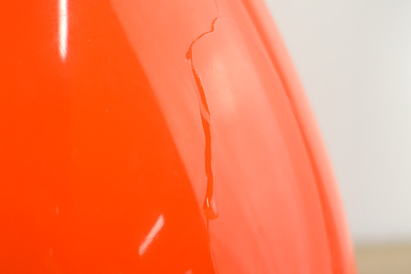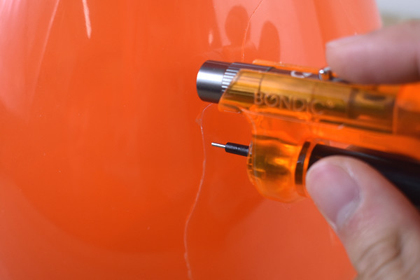 ちょうど加湿器の水を補給する部分を割ってしまったので、「BONDIC」で接着してみましょう。接着面が清潔なことを確認したら、カートリッジから液体プラスチックを絞り出して破損部に塗っていきます。液体プラスチックには少し粘度があり、扱いやすい印象。また紫外線ライトを当てない限り固まらないため、瞬間接着剤のように焦って作業しなくていいのがうれしいポイントでした。
