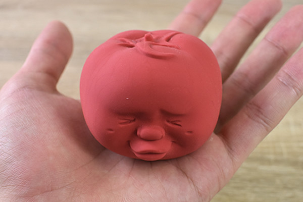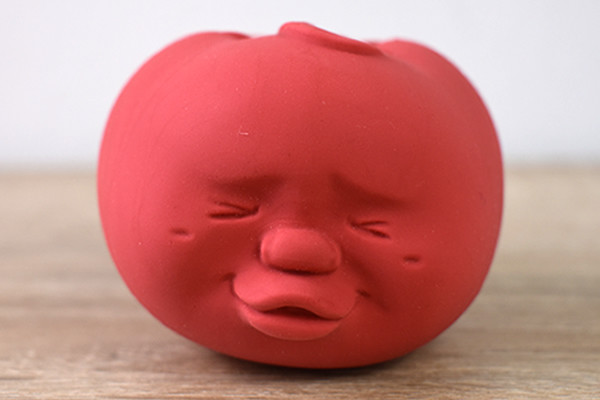 「CAOMARU Tomato」は“シリコーン”で作られたトマト型のストレス解消グッズ。一見すると普通のトマトのように見えますが、本体には“リアルな人の顔”がデザインされています。目をつむりながら“アヒル口”をする表情が何とも言えない雰囲気。ちなみに商品のケースには「甘えん坊のとまとちゃん」と書かれていました…。