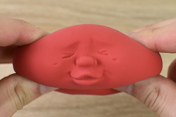 実際に同商品を握ってみたところ、程よい弾力が気持ち良くていつまでも触れていたくなります。握るだけでなく、指を差し込んだりつねったりしてもOK。個人的には左右に引っ張った時の顔が可愛くてお気に入りです。