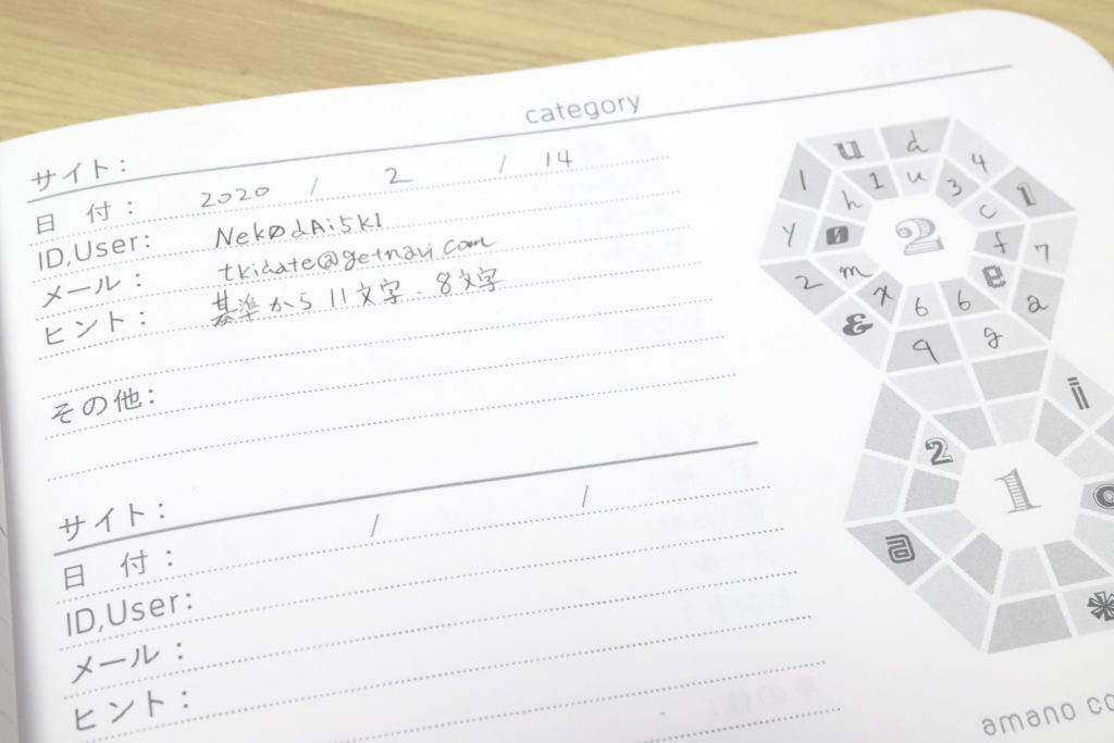 そこで、本人確認用に使えるぐらいの秘匿性なら、それをそのままパスワードにしちゃってもいいんじゃない? というのが、この「パスワードノート」の発想なのである。