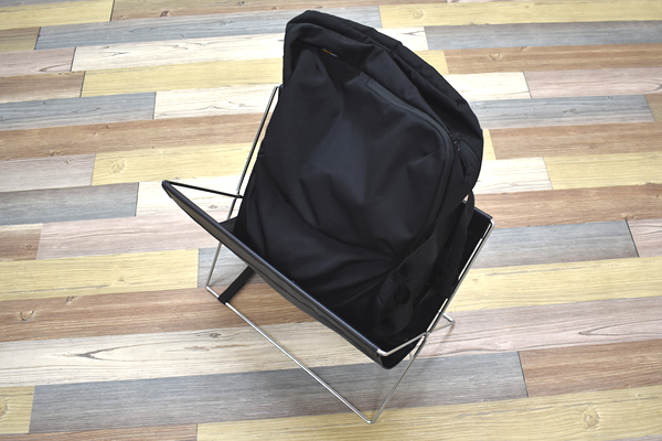 折りたたみ式の同商品は、手でパッと開くだけですぐに荷物を入れられます。実際に広げてみると、“V字型”になった荷物入れがお目見え。思ったよりも底が深くて、リュックサックも余裕で収納できました。ちなみに耐荷重は約3kgほど。新生活に向けて大きめのカバンを購入しても置き場所に困りませんね。