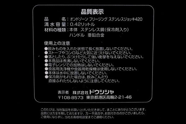 生活に関わるモノを企画・開発しているメーカー「ドウシシャ」。同社が手掛ける「ON℃ZONE フリージング ステンレスジョッキ 420ml」は、ビールやハイボールをより美味しく味わえる人気商品です。氷点下まで冷えたドリンクの飲み心地が好評のようで、ネット上では「とにかくキンキンに冷えてウマい!」「ビールが予想以上に冷たくなるよ」といった声が多数。話題になっている“氷点下の味わい”を体験したいと思います。