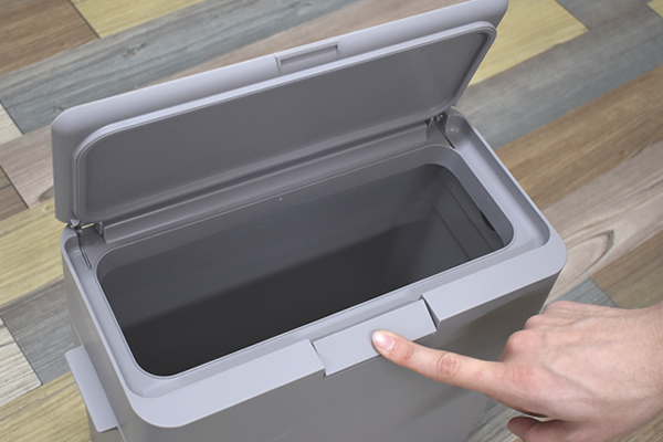 他にも、痒いところに手が届く便利ポイントが。ゴミ箱にある“ボタン”を押せば、ワンプッシュでフタを開けられます。実際に使ってみたところ、スムーズにゴミを捨てられるのでストレスなく利用できました。