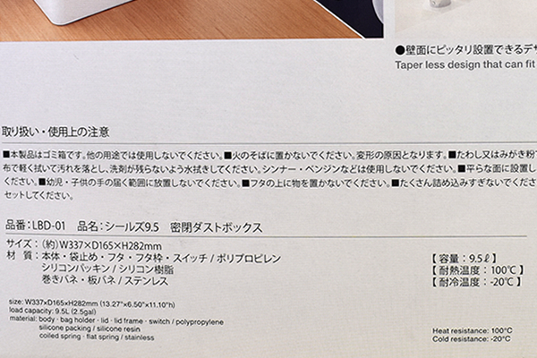 ●シリコンパッキンがニオイもれを防ぐ「シールズ9.5 密閉ダストボックス」(ライクイット)