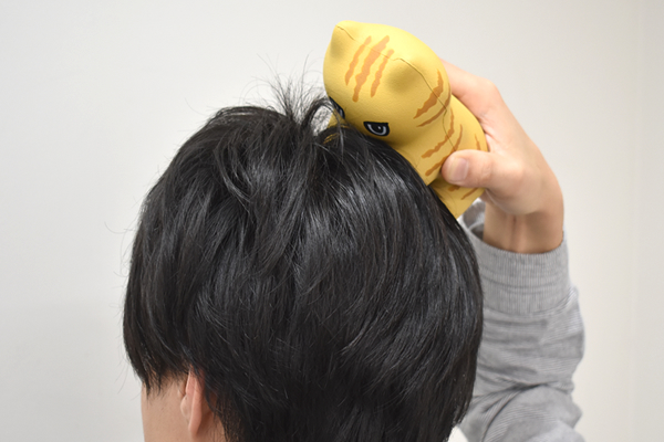 握ったり押し当てる強さが自分で調節できるので使い勝手はかなり良く、ヘッドスパの感覚で頭部をほぐすことも可能。ちなみに、こりもむにゃんの耳を使用するとピンポイントでこりをほぐせました。