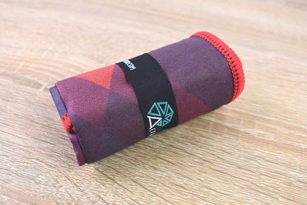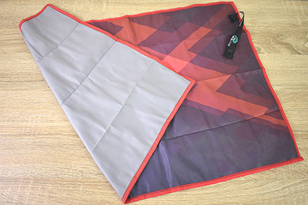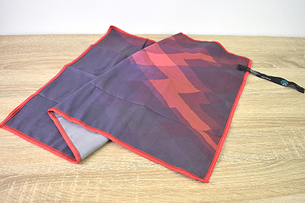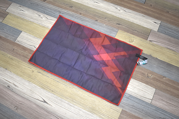 今回購入したのは、60×39cmの普段使いしやすいジムタオルサイズ。“マグマ”と名づけられた赤系の色味で、黒やグレーの混ざったデザインがクールなカッコよさを引き出しています。