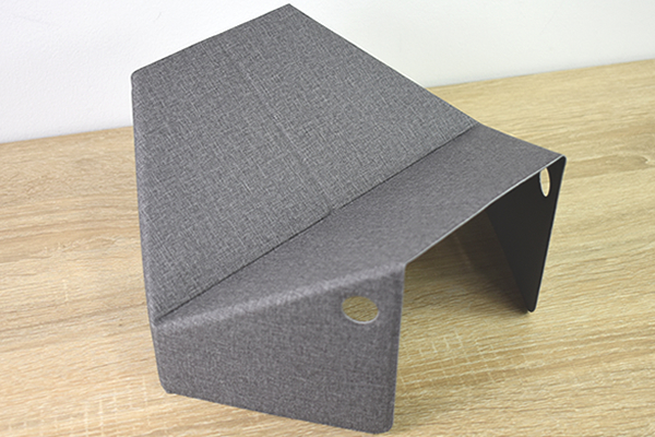 組み立てた本体は、約30.3(幅)×24.5(奥行)×14.5cm(高さ)のスタンドに。プレートを折り畳んだだけなのにもかかわらず、ずっしりとした安定感があります。