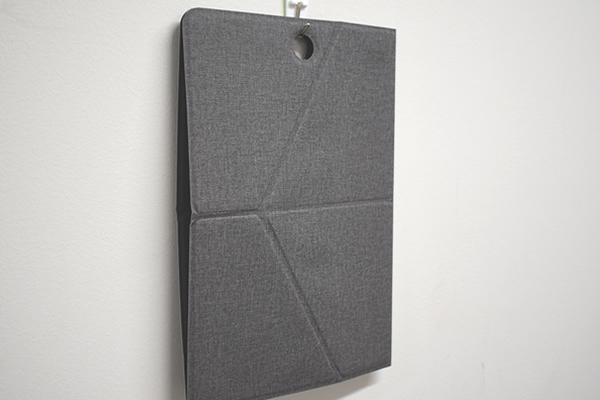 同商品のサイズは21(幅)×0.7(奥行)×29.7cm(高さ)ほどで、ちょうどA4用紙と同じくらいのサイズです。フックにかけられるように穴が空いているのもポイント。通常時は薄いプレート型なので、ロッカーや机のサイドでコンパクトに保管できます。実際に使う時は、ボディについた“折り目”に沿って組み立てるだけでOK。「ちょっと複雑な仕組みなのかな?」と心配でしたが、折り紙のような感覚で簡単にバッグスタンドを組み立てることができました。
