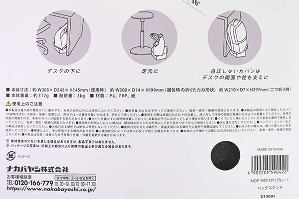 ●カバンを床に“直置き”しなくてもいい!「ori-pact バッグスタンド」(ナカバヤシ)