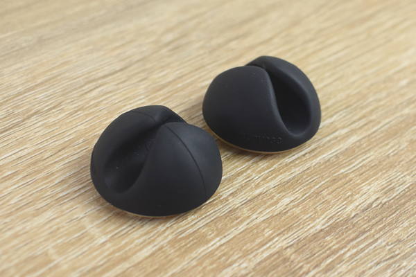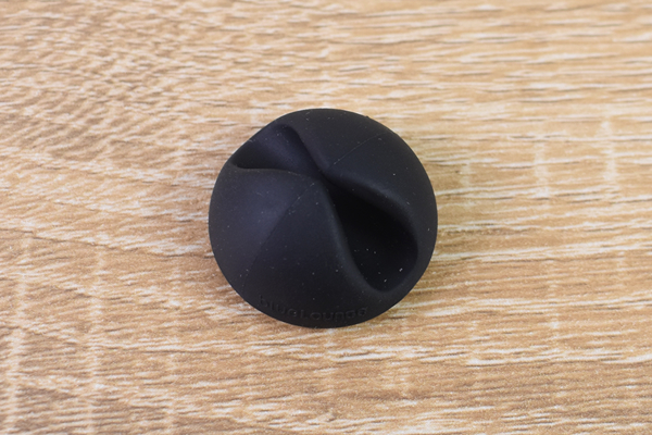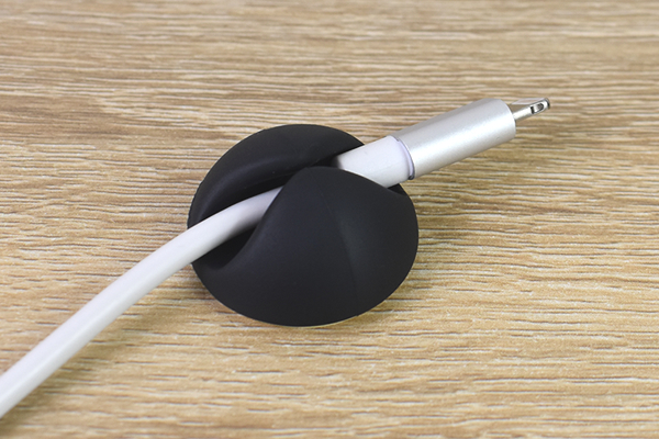 同商品はドームのような形状のケーブルホルダー。真ん中を一直線に割った谷間があり、そこにケーブルを通すことで線を誘導できます。谷は両側からせり出して上部が狭くなっているので、ケーブルが上から抜けてしまう心配はありません。