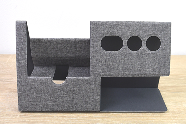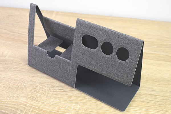 使い方は簡単で、パッケージ裏面の記載に従って本体を組み立てるだけ。指定された箇所を折り込んでいくと、10秒もかからずにアスレチックのような見た目のスマホ&ペン立てが完成しました。