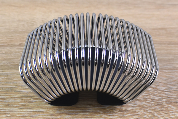 同商品のデザイン性の高さは、グッドデザイン・ロングライフデザイン賞を受賞したほど。扇状に広げられたコイルばねとスチール板を組み合わせたシンプルな構造ですが、今まで見たことのないデザイン性に思わず見とれてしまいます。職人の匠の技術で製作されたバネが、アイデア1つでここまで美しくなることに驚かされました。