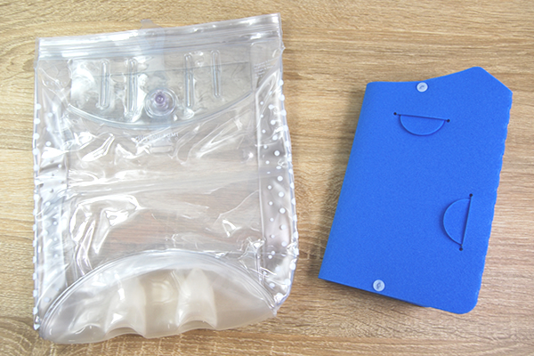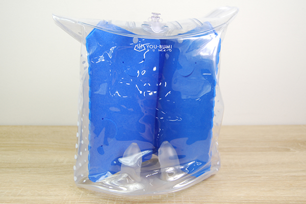 さっそく“書籍ホルダー”へ本の表紙を入れて、まずは本体のポケットにセット。ファスナーを閉めたら折り返して、後は“空気栓”から息を吹きこんでください。本体を風船のようにフワッと膨らませれば準備完了です。