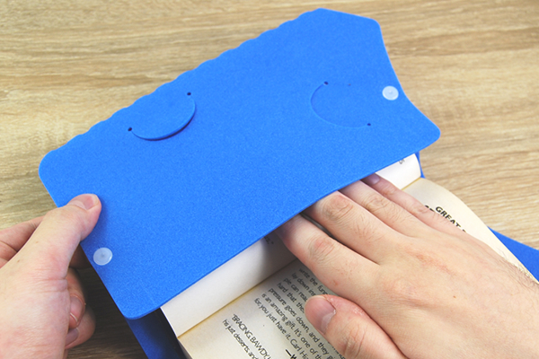 試しに親指を底面の“指サック”に通してみたところ、滑ることなく本をめくることができました。「本当に本が濡れないのか?」と心配していましたが、内部に水が浸入する気配はありません。ちなみに指サックの“滑り止め”が弱くなった場合、濡らした布で表面を拭き取れば復活する様子。本がしっかりとガードされているので、“長風呂”でも安心して読書を楽しめますよ。