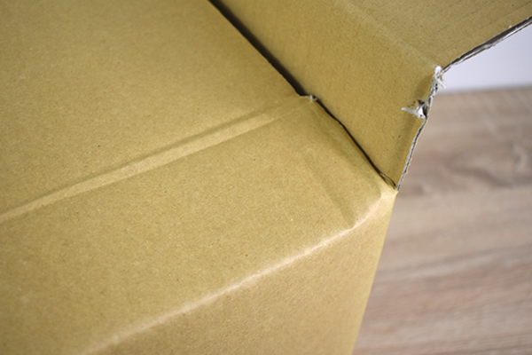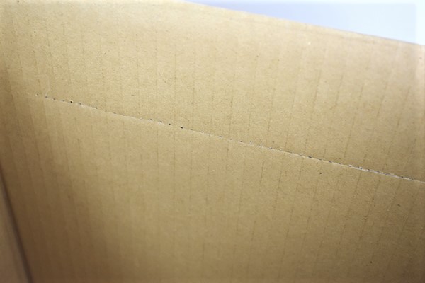 そのまま横にスライドすると回転刃が転がり、段ボールにくっきりと“ミシン目”が。四面全てに同様の作業をおこなったら、あとは簡単です。段ボールの四隅をカッターでカットし、ミシン目の高さまで切りこみを入れて作業完了。いつものようにフタをしてみると、段ボールが8cmほど小さくなりました。特に力を入れる必要もないので、誰でも手軽に作業できますよ。