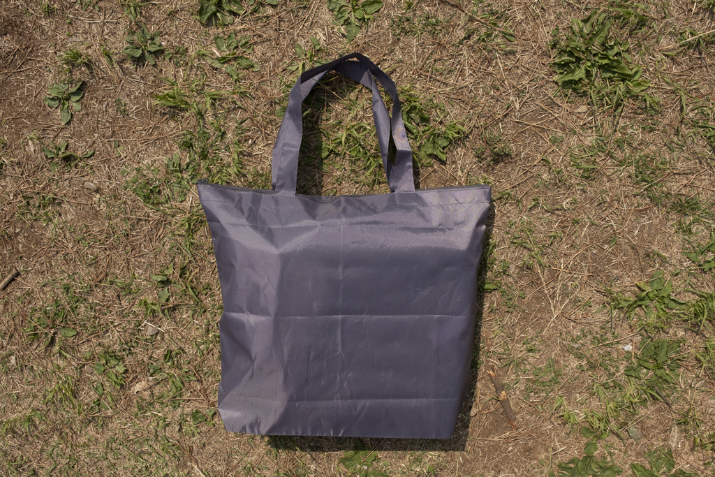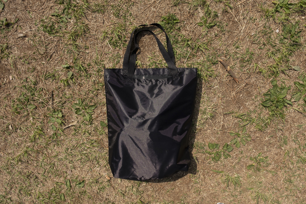100均の商品は英字が書かれていたり、かわいいデザインが描かれていたりして、「男が使うにはちょっと……」というモノも多いですが、ありました。110円で。極めてシンプルなトートタイプのバッグで、ポリエステル素材で軽くて丈夫。会社のデスクの引き出しに忍ばせておくサブバッグなどにも最適です。