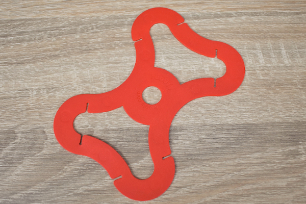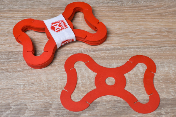 「フーティ」が生まれたのは、オランダのアムステルダム。旅行の際、スーツケースに収まるような、持ち運びやすいボールが欲しいという発想から生まれたおもちゃです。今回ゲットしたのは、華やかな赤いカラーのフーティ。パッケージから取り出してみると、同じ形のプレートが10枚セットになっています。