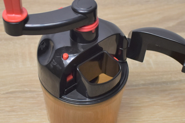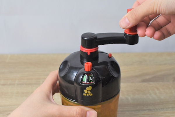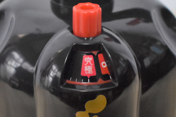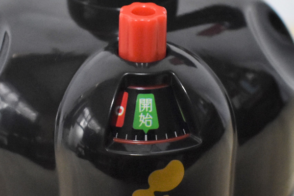 なかなか根気のいる作業ですが、これも美味しい納豆のため……! 約305回混ぜると、蓋の半分が自動で開放され醤油を入れる口が現れました。