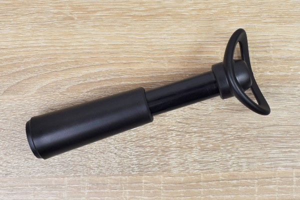 続いてはポンプの出番。先ほど入れたストッパーにポンプをかざし、自転車の空気入れの要領で上下させます。するとポンプを引く時だけ重くなり、空気が抜けていることを実感できました。空気を抜くたびに、どんどん重くなるポンプ。何度か繰り返すとストッパーから「カチッカチッ」という音が鳴るので、この合図があったら空気抜きは完了です。