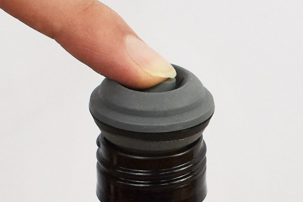 密閉状態を解除する時は、ストッパー上部の突起を倒すだけ。実際に倒してみると、「シューッ」という音とともに密閉が解除されていきます。ちなみにストッパーは酒瓶の口径15~21mmのものに対応しているため、酒瓶の口と合うか確認してから使ってくださいね。