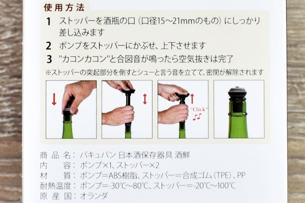 ワイン保存器具を製造・販売するオランダの企業「Vacu Vin」。日本ではワイン保存器具の“代名詞”として広く認知されていますが、実は専門にするお酒はワインだけではありません。「バキュバン 日本酒保存器具 酒鮮」(3080円/税込)はその名の通り、日本酒用の保存器具です。同商品について、ネット上では「これを使ってから日本酒の味が落ちなくなった」「1度密閉したら2週間は風味が変わらなくなる」と絶賛の声が。実際に日本酒を用意して、レビューしたいと思います。