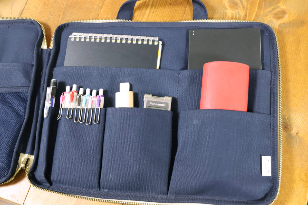 使い方としては、ポケットごとに入れるモノを決めて、きちんと分類収納するのに向いたタイプと言える。フルオープンにすればモノの出し入れは簡単なので、ポケットが多いとはいえ使いにくさは感じられない。