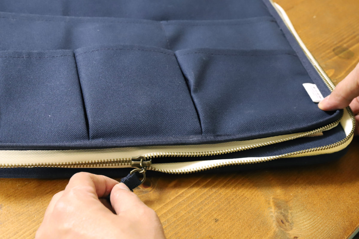この形態だとジッパーの内側にノートPCやファイル類が収納できるので、容量もアップする仕組みだ。