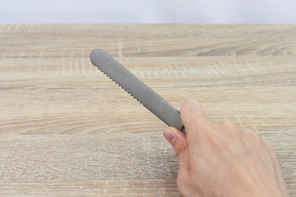 ナイフの特徴は熱伝導率だけではありません。よく見るとほんの少し湾曲しているため、バターが塗りやすい構造になっていました。シンプルな作りなので洗いやすいのもうれしいポイント。バターの他にも、チョコレートやクリームチーズといった固まりやすいものに大活躍してくれます。