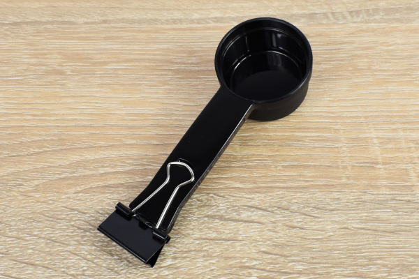 中に入っていたのは、コーヒーメーカー本体と1杯約10gのメジャースプーン。メジャースプーンの柄にはクリップがついており、コーヒー豆の保存袋を留めて一緒に保管することが可能です。