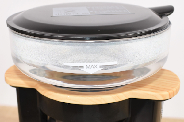 乗せた状態はしっかりと安定していて、倒れる心配はなさそう。回転スイッチを押すと、給湯サーバーがゆっくりと回転し始めました。そのまま“MAX”と書かれた目印までお湯を注ぎ、フタをして蒸らしの工程へ。給湯サーバーの下に空いた2つの小さな穴から、少しずつお湯がコーヒー豆に注がれていきます。お湯を注いだら、あとは120~180秒待つだけでOKです。