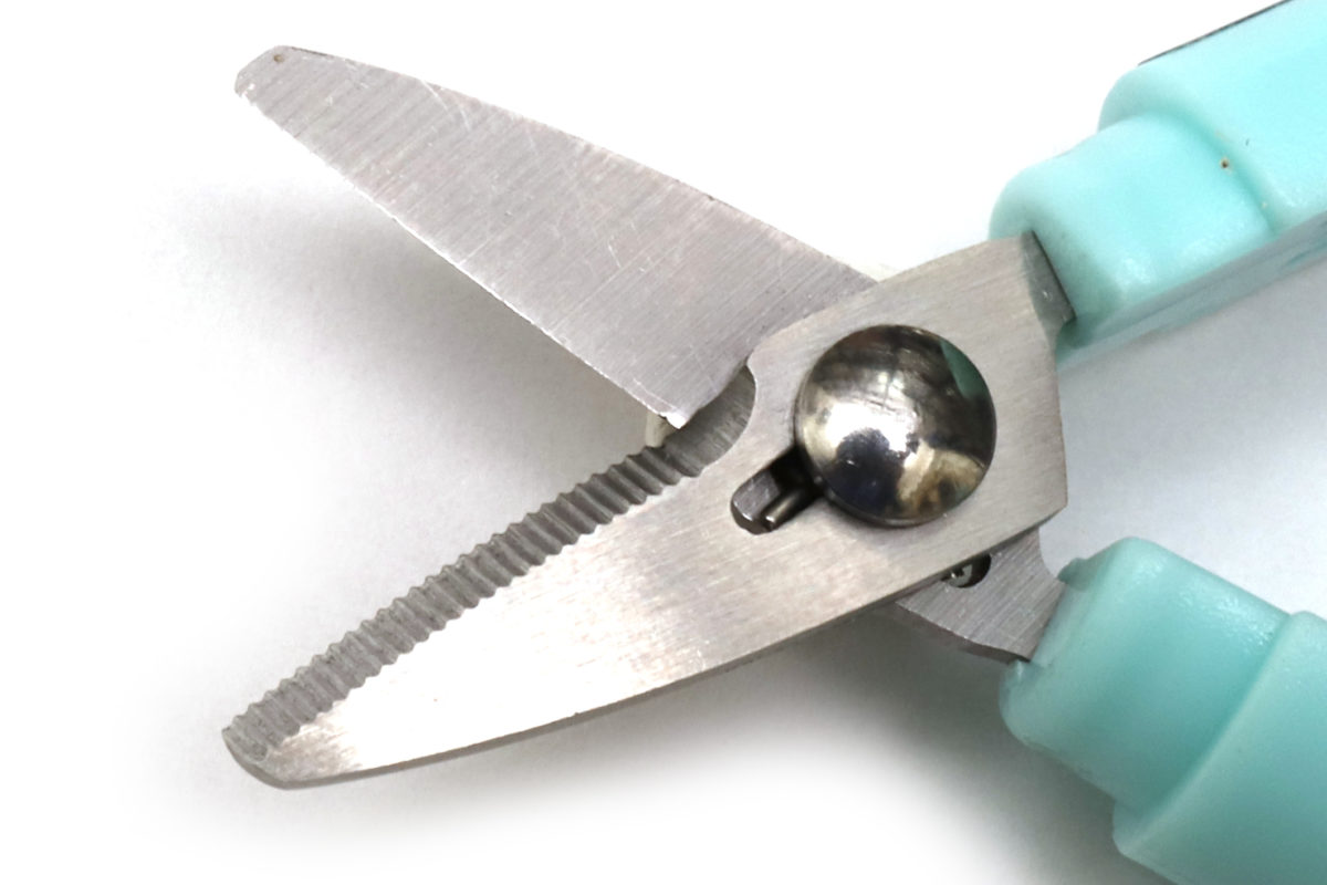 刃が小さいと、カットする対象がわずかに滑っただけで刃からこぼれて切り損ねる、ということがある。それがギザ刃なら、摩擦抵抗が強くなるのでカットが安定するのだ。薄いフィルムなども滑らずサクッと切れるのは、良くできた刃だと感じられる。