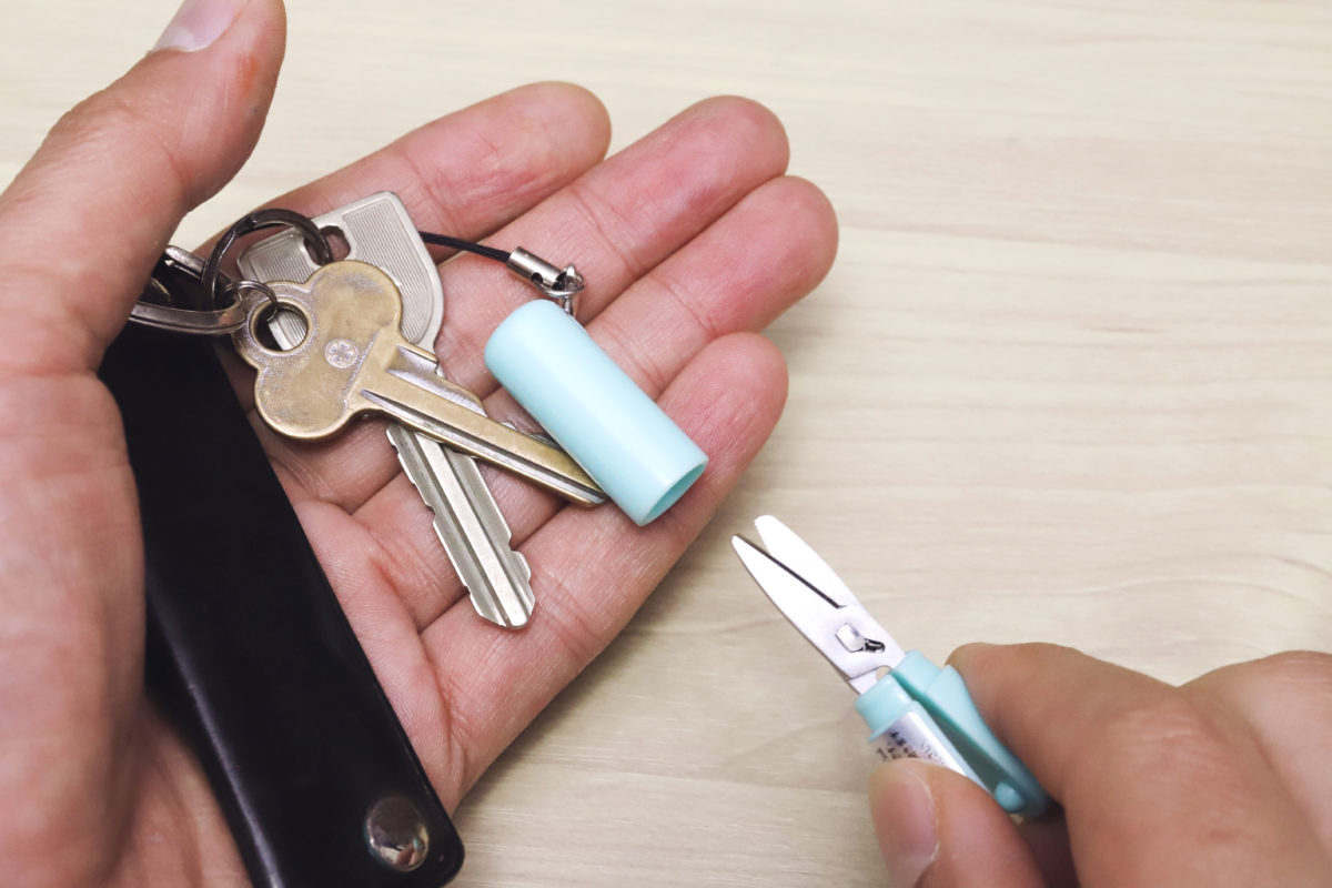 個人的には、キャップ式&キャップ側にストラップが付いている、というのも評価ポイントだ。例えばキーホルダーなどにつけて持ち運ぶ場合、本体側にストラップがついていると、作業するたびにキーリングから外して……という手間が発生してしまう。だがキャップ側がつながっているだけなら、作業するときに引き抜けばハサミはフリーになるので使いやすいのである。全体的に凹凸がほぼないので、携帯時にどこかに引っかかってキャップから勝手に抜け落ちるといったトラブルも少ないはずだ。