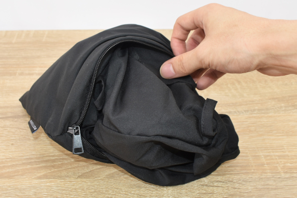 きれいに畳まれた形で販売されていた同商品。この状態では170(幅)×75(奥行)×250mm(高さ)で、ちょっと大きめのポーチといったサイズ感です。