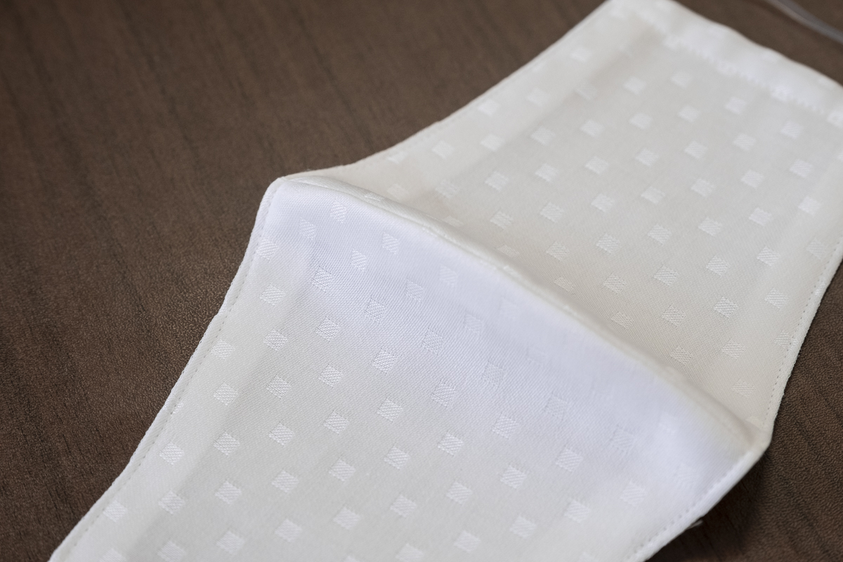 また、弊社のマスクには表面にシャツ地を使用し、内側にはガーゼ生地を使用しているのですが、このことで見た目が良くなった。例えばガーゼのみのマスクですと、見た目がドレッシーに見えないんですよね。今はフォーマルな場でもマスクを使う機会が増えていると思いますが、そういった場合にも違和感なく使っていただけるのがシャツ地なのではないかと思っています。