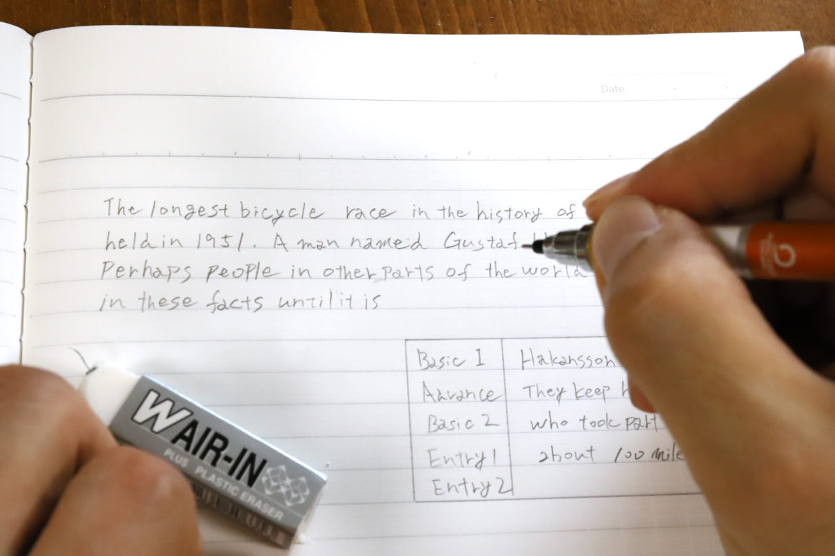 他にも、英文であれば点線で空いた空白を使って発音記号や単語の意味を小さく書き込んだり、縦書きにして漢文のレ点・返り点を書いたり、という使い方も可能。