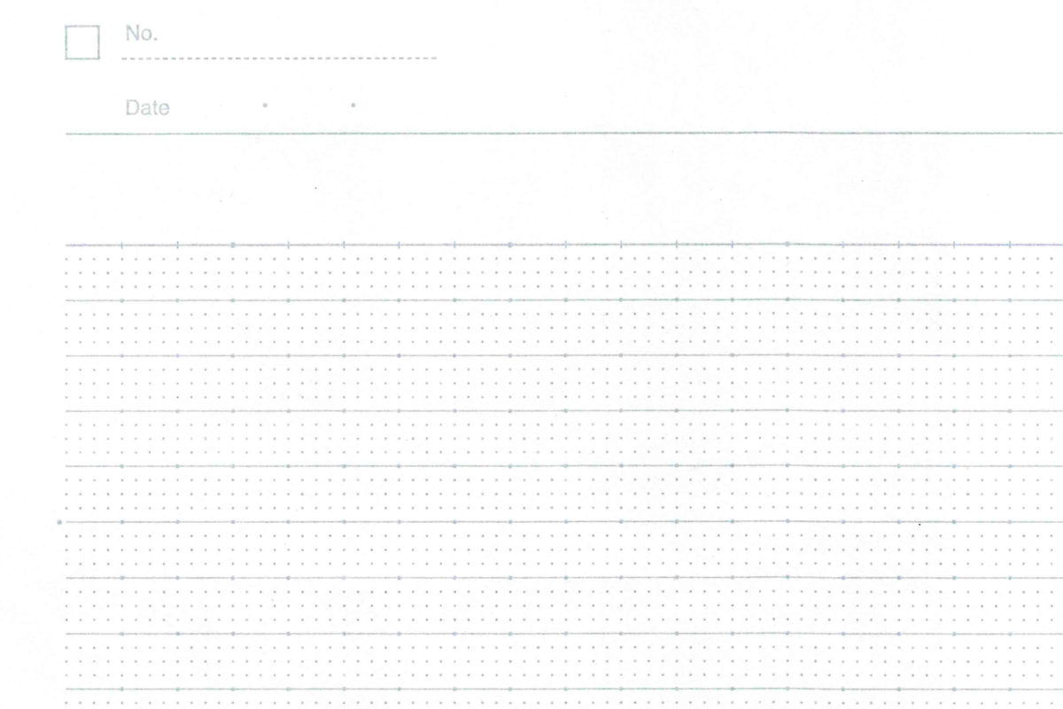 対して文系線は、まずメインのドット入り罫からして少し特殊なA+罫(7.7mm)、B+罫(6.8mm)という行幅のもの。なぜそうなっているかというと、+で少し増えている分を使って、行の上側を点線罫で区切っているのである。